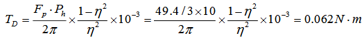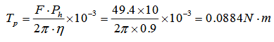 Fp— 滾珠絲桿副間的預(yù)緊力,Fp = F max/3 = 49.4/31 = 6.47N